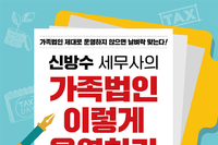 신방수 세무사 著 '가족법인 이렇게 운영하라' 최근 자산가들이 활용하는 매력적인 절세통로로 소문나면서 ‘가족법인’에 대한 관심이 높아지고 있다. 가족법인은 가족을 중심으로 운영되는 회사다. 법인세 뿐만 아니라 상속세와 증여세에서도 절세혜택을 볼 수 있다. 이러다 보니 제조업부터 부동산업에 이르기까지 가족법인에 대한 관심이 높다. 그러나 주먹구구식으로 가족법인을 만들었다가는 낭패를 볼 수 있다. 소유와 경영이 분리되지 않다 보니 예기치 못한 리스크에 봉착할 수 있기 때문이다. 미숙한 판단으로 회삿돈을 잘못 사용했다간 거액의 세금 추징이나 세무조사를 받을 수 있다. 작은 법인이라도 상법이나 세법에서 규정하고 있는 원칙에 따라 경영해야만 이러한 위험을 예방할 수 있다. 이럴 때는 역시 든든한 길잡이가 필요하다. 베스트셀러 작가 신방수 세무사가 ‘가족법인 이렇게 운영하라’(개정판)를 펴냈다. 이 책은 국내 최초 가족법인에 대한 절세 가이드북이다. 가족법인이 알아야 할 법률 및 세무에 대한 내용을 체계적으로 정리했다. 가족법인 법인세 절세부터 배당금 처리까지 총망라해 2023년 첫 출판 당시 큰 인기를 끌었다. 신방수 세무사는 “가족법인의 운영원리를 알면 세무조사가