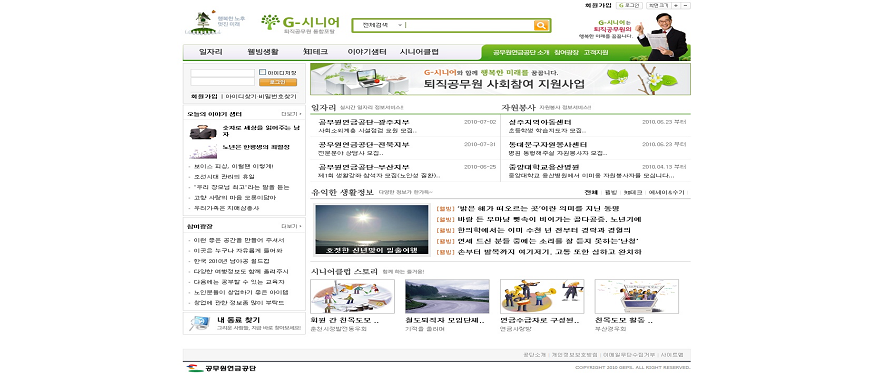 27일 행정안전부에 따르면, 'G-시니어'는 민‧관의 최신 고용정보와 자원 봉사활동 정보를 퇴직공무원들에게 실시간으로 제공하고, 노령층의 주요 관심사인 건강과 여가활동, 자산관리에 관한 전문가들의 고정칼럼과 다양한 퇴직생활의 성공사례 등을 수집해 게시한다.