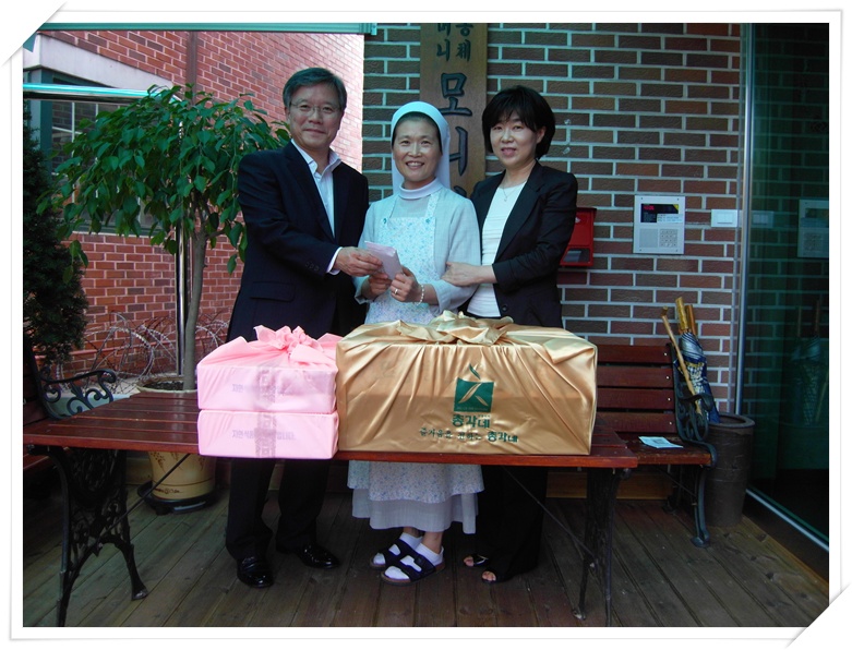 공형학 강남세무서장이 모니카의 집에, 위문품을 전달하고 있다.