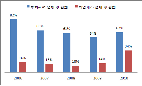 이는 참여연대가 취업제한제도에 대한 모니터링을 시작한 2006년 이후 조금씩 낮아지는 추세를 보이던 퇴직자의 업무연관성이 있는 영리사기업체 취업 비율이 작년보다 2.4배 이상 급증한 것이다.