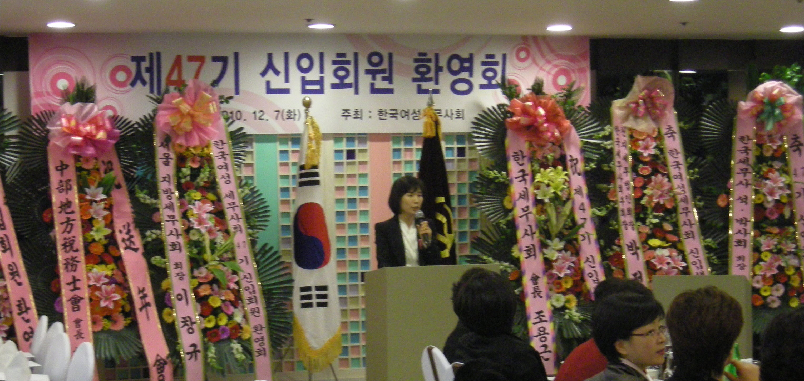 한국여성세무사회(회장·고은경)는 지난 7일 조용근 한국세무사회장 등 100여명의 내빈들이 참석한 가운데 서초동 천년부페에서 제47기 신입회원 환영회를 개최했다.