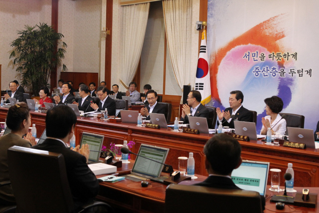 12일 국무회의 자리에서는 '평창쾌거'에 대한 국무위원들의 축하박수도 있었다. [사진제공=청와대]