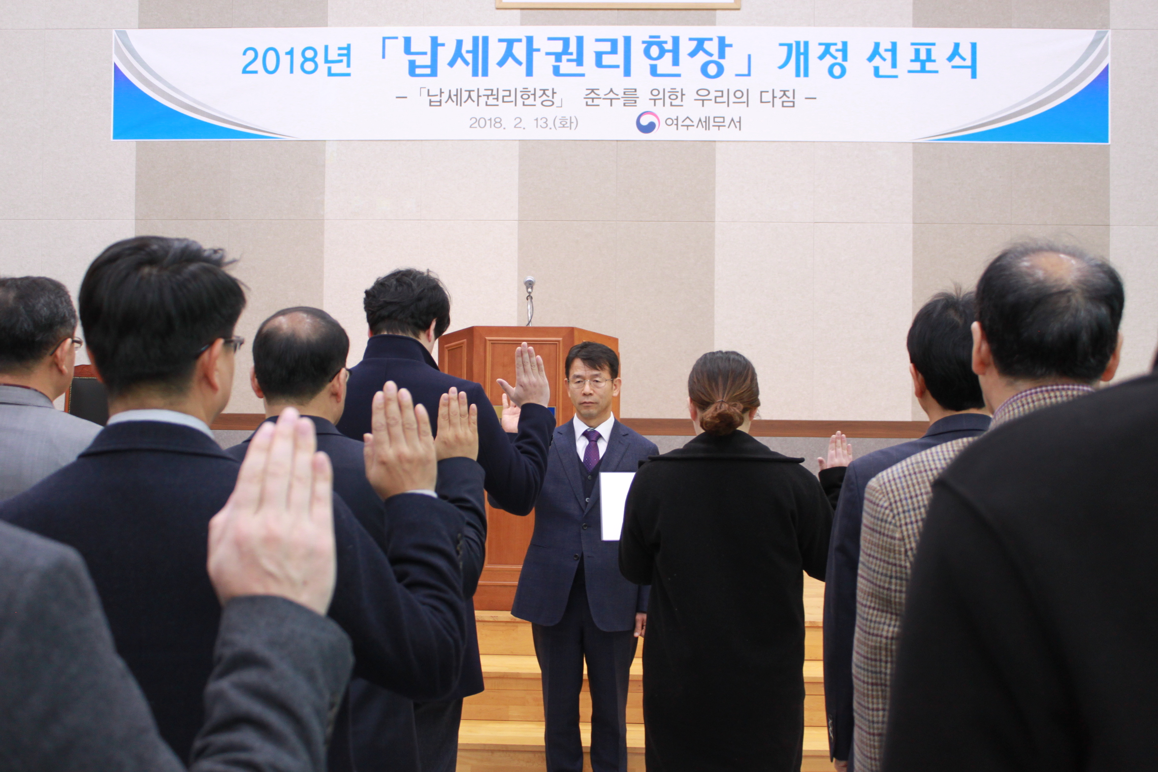 여수세무서(서장·최재훈)는 지난 13일 3층 대회의실에서 '납세자권리헌장'을 성실히 준수할 것을 다짐하는 시간을 가졌다.
