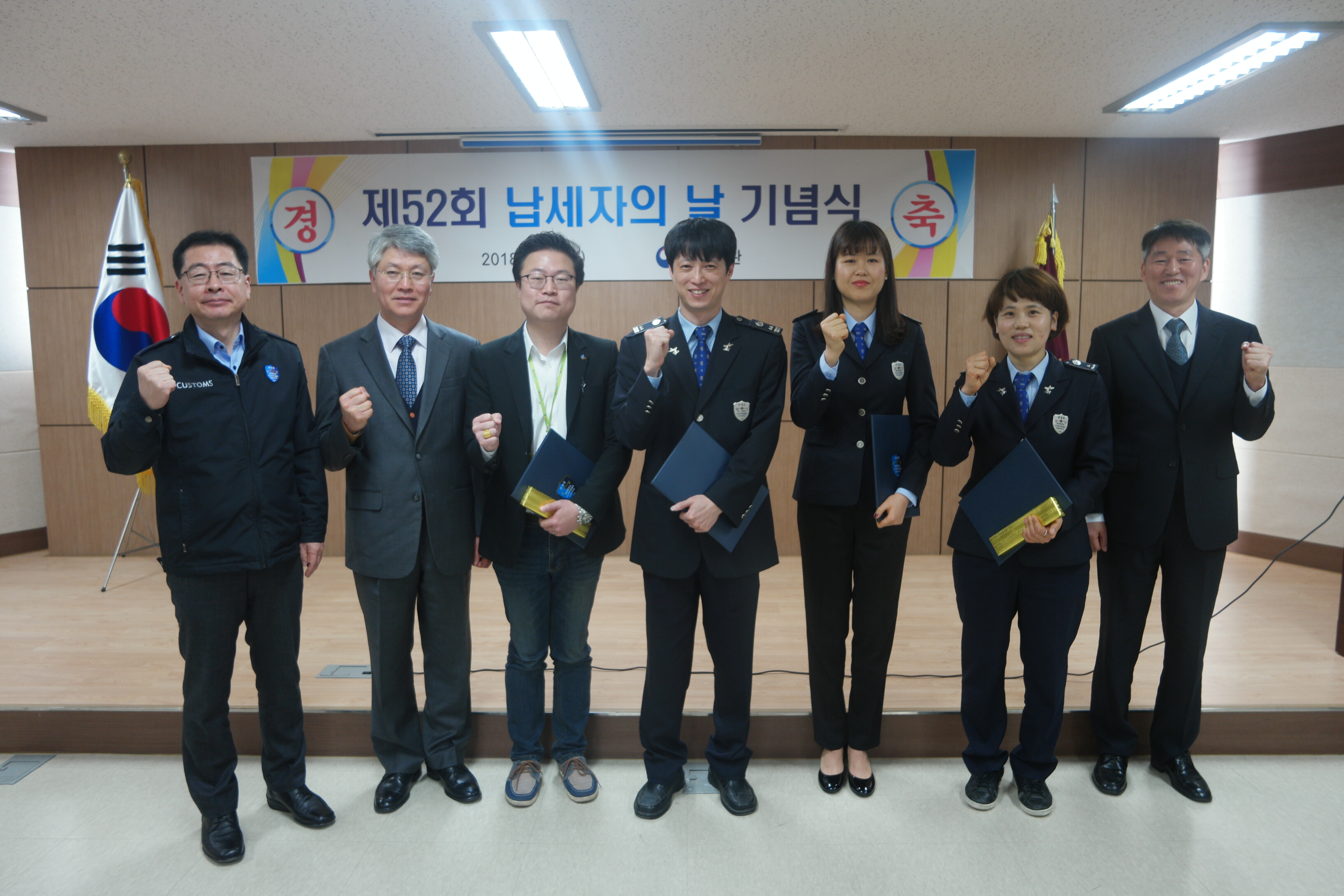 제주세관(세관장·이승규)은 5일 '제52회 납세자의 날'을 맞이해 세정협조자로 선정된 수상업체와 세관직원 등이 참석한 가운데 강당에서 기념행사를 개최했다.