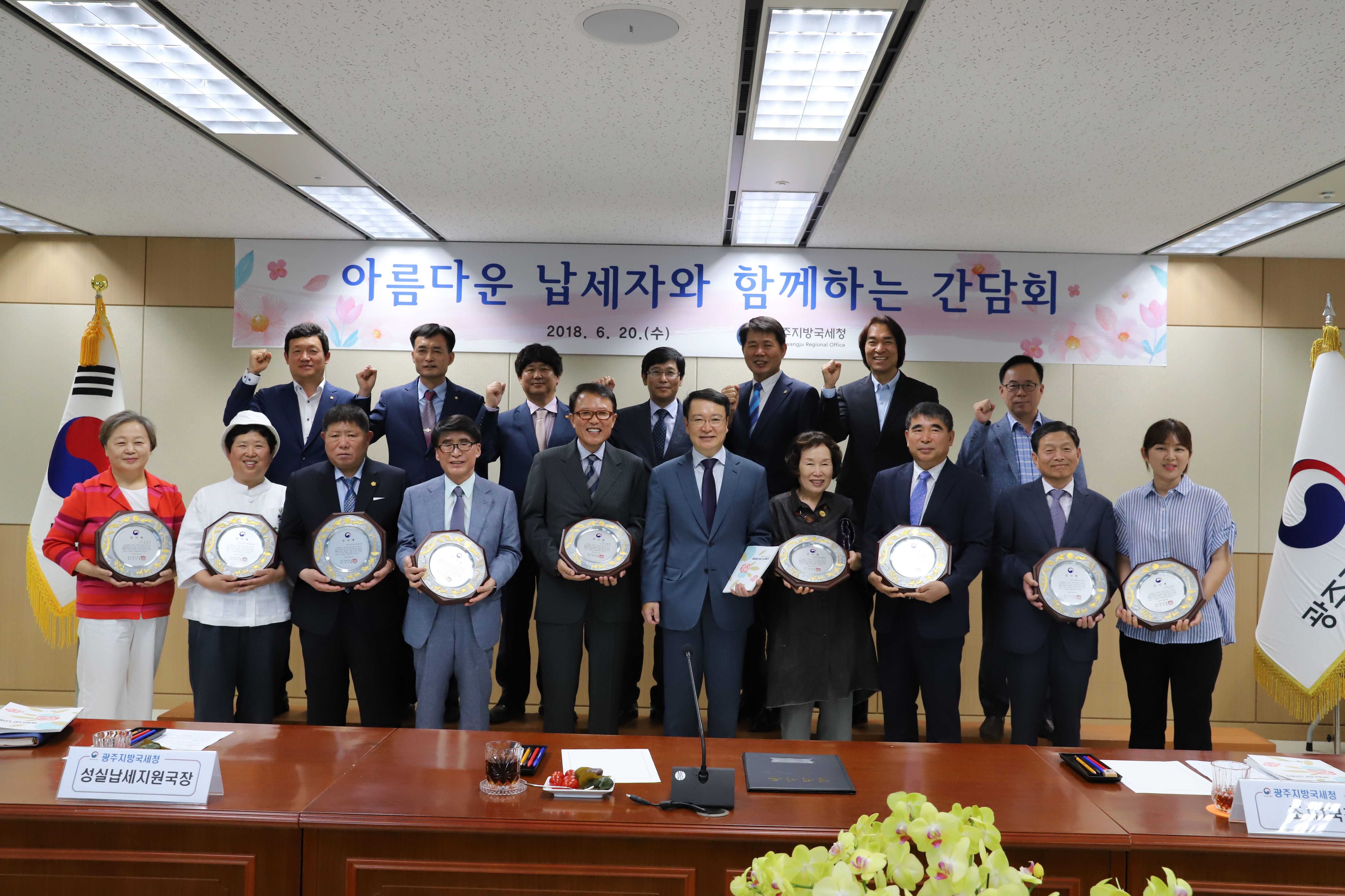 광주지방국세청(청장·이은항)은 20일 정부광주합동청사 15층 회의실에서 역대 '아름다운 납세자 상' 수상자를 초청, 간담회를 가졌다.