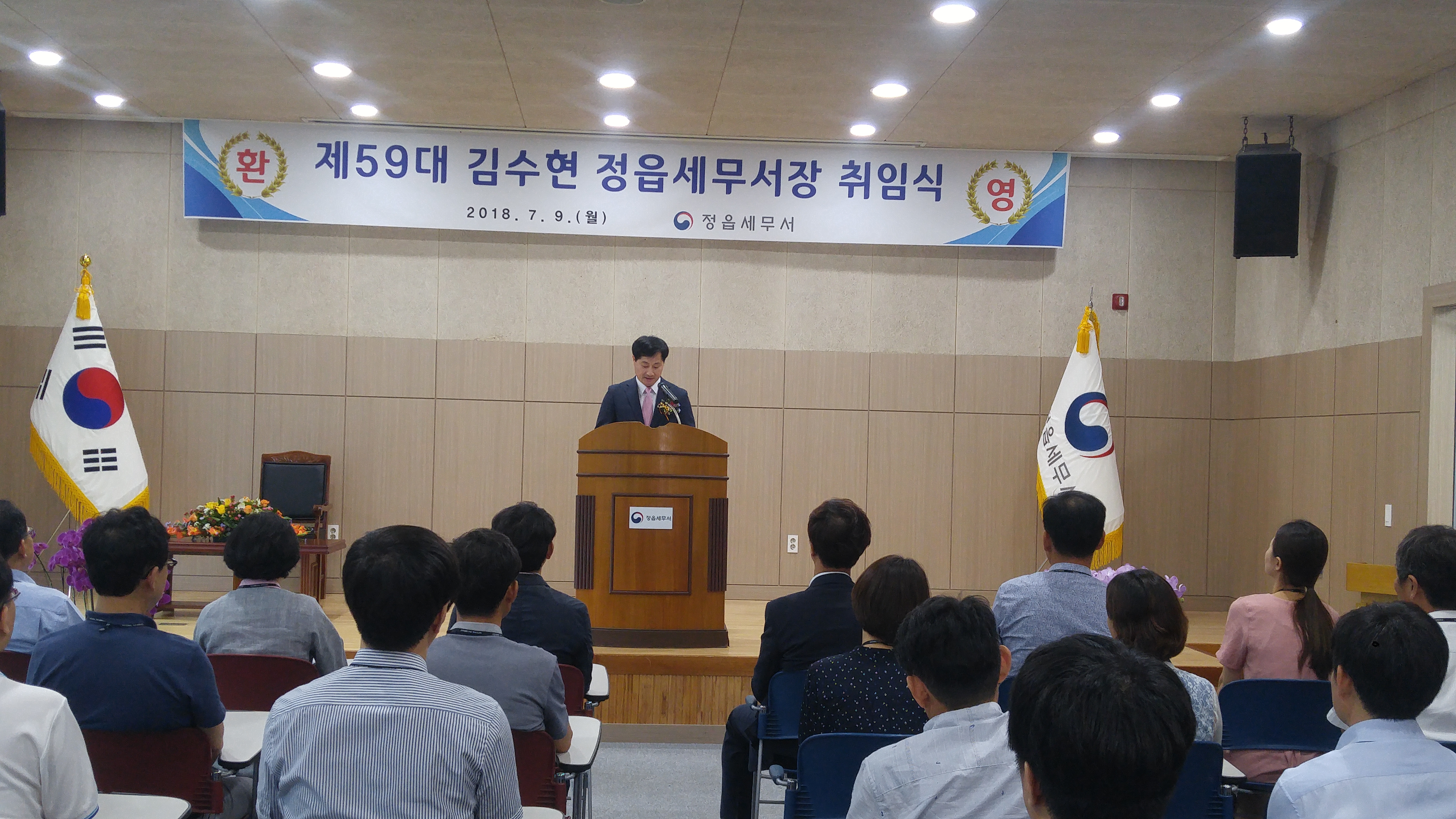 정읍세무서는 9일 강당에서 전직원이 참석한 가운데 김수현 신임 서장 취임식을 개최했다.