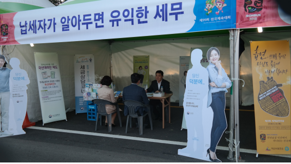 익산서는 홍보부스에서 △영세납세자지원단 △국선대리인 △권리보호 요청제도 등 각종 납세자 권익보호제도와 체납액 납부의무 소멸특례제도 등 세정현안을 홍보하고 있다.