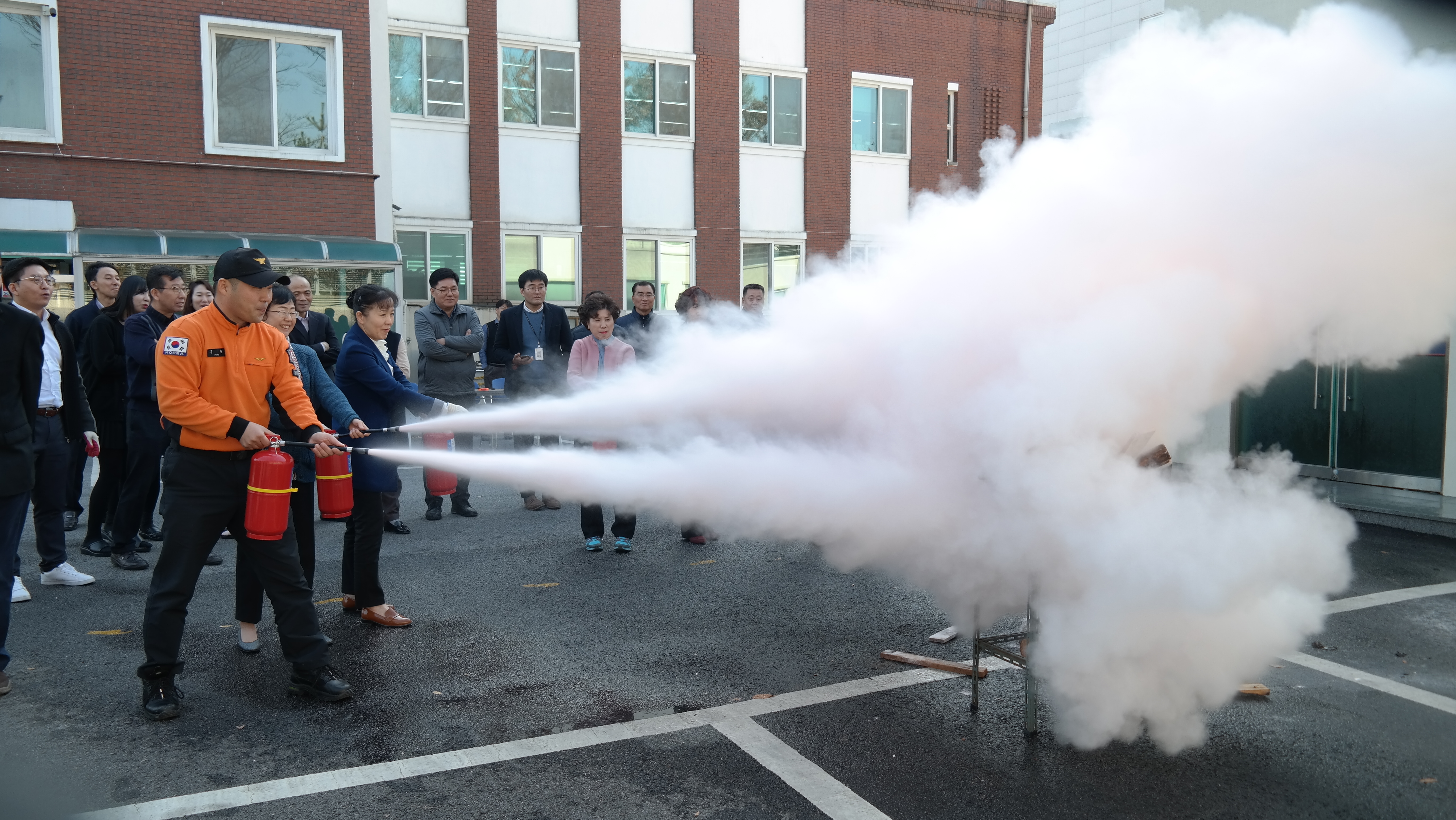 이날 소방훈련에는 민원부서 직원을 제외한 전 직원이 참석해 소화기와 소화전 사용요령을 배우고 직접 실습했다.