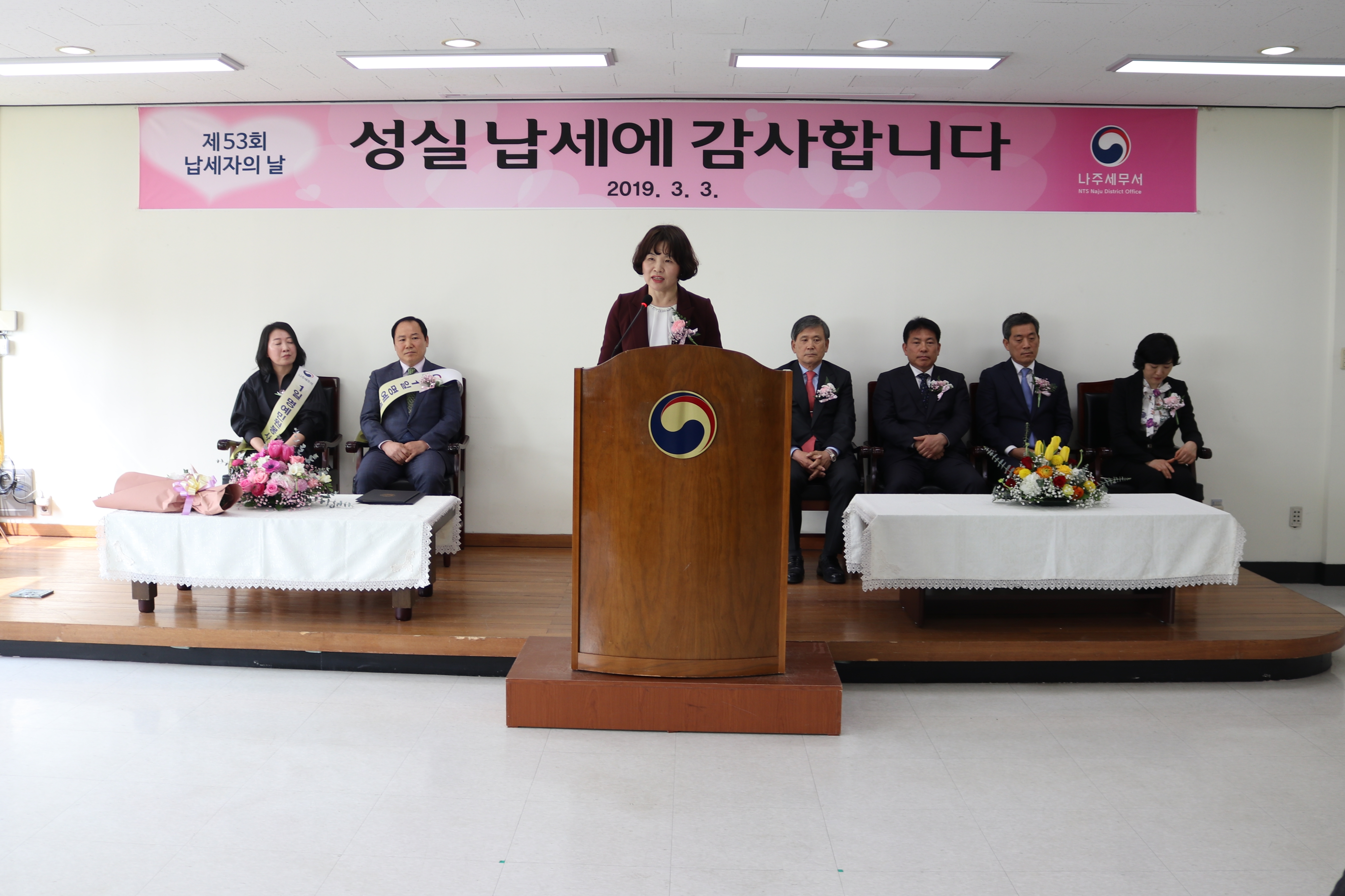 한편 나주서는 '제53회 납세자의날' 기념식에서 모범납세자에게 표창장을 수여하고, 다양한 사회공헌활동으로 나눔문화를 적극 실천하고 사회적 책임을 다하고 있는 납세자와 세정협조자들에게 감사의 마음을 전했다.