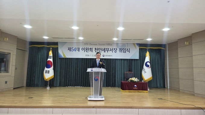 천안세무서는 지난 2일 이완희 제54대 세무서장 취임식을 개최했다. 이 신임 서장은 취임사에서 공정하고, 합리적인, 미래를 준비하는 천안세무서를 목표로 제시했다.