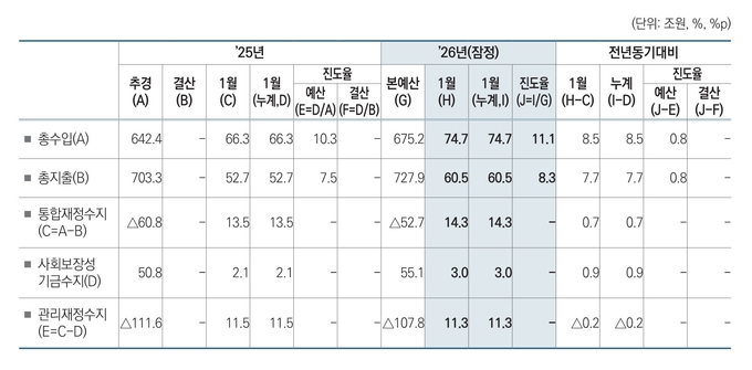 1월 누계 세외수입은 2조3천억원, 기금수입은 19조6천억원으로 각각 전년 동기 대비 6천억원, 1조7천억원 증가했다.