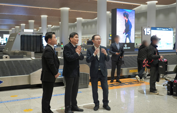 이 관세청장은 이날 현장점검에서 밀리미터파 신변검색기, 마약·폭발물탐지기 등 첨단장비를 활용한 세관검사 등을 직접 점검하고, 입국장 혼잡을 최소화하기 위해 여행자 동선 관리를 면밀하게 살폈다.