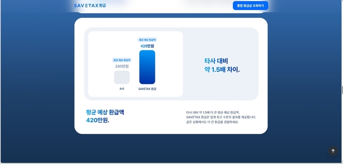 ‘SAVETAX 환급’은 모 회계법인이 작년 6월 개인사업자 환급서비스를 리브랜딩해 일반 개인까지 대상을 확대·제공하는 환급서비스로, 홈페이지에 “이미 납부한 세금 중 과오납된 부분을 돌려받을 수 있도록 도와주는 경정청구 서비스로, 연말정산 환급과 비슷한 개념”이라고 설명돼 있다.