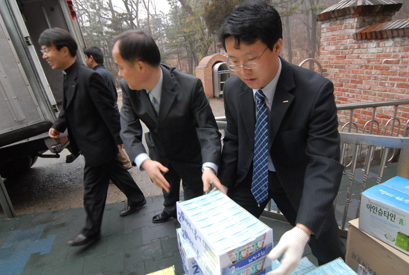 남양유업 임직원들은 성북동에 위치한 ‘성가정입양원’을 방문, 유아용두유와 우유, 유아용품 등의 지원물품을 전달했다.