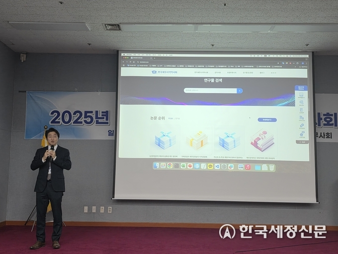 우동호 홍보부회장은 홈페이지에서 ‘대한민국 조세시스템과 납세 마일리지 제도의 실효성에 대한 연구’를 요약한 사례를 시연하고 “제가 알기로는 어떤 학술연구단체도 이런 식의 AI를 접목한 논문 요약 시스템을 아직 하지 않고 있다”며 AI를 접목한 홈페이지 구축의 장점을 설명했다.