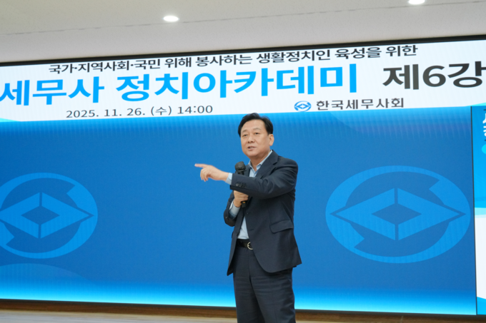 한국세무사회(회장·구재이)가 세무사의 생활정치인 육성을 목표로 운영 중인 ‘세무사 정치아카데미’ 제6강이 26일 세무사회관 6층 대강당에서 개최했다.