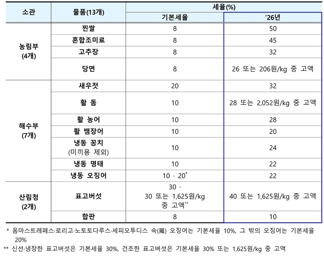 정부는 2026년 정기 할당관세 운용방안을 입법예고를 거쳐 내년 1월1일부터 시행할 예정이라고 2일 밝혔다.
