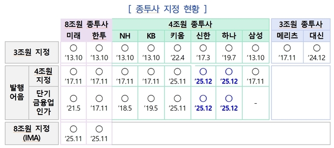 이번 추가 지정으로 인해 단기금융업무 영위가 가능한 종합금융투자사업자는 한국투자증권·미래에셋증권·NH투자증권·KB증권·키움증권을 포함해 모두 7개사가 됐다.
