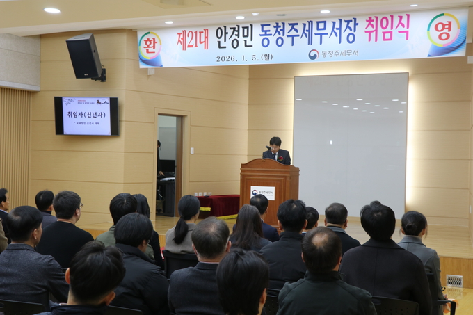 동청주세무서는 5일 대강당에서 안경민 제21대 세무서장 취임식을 개최했다.