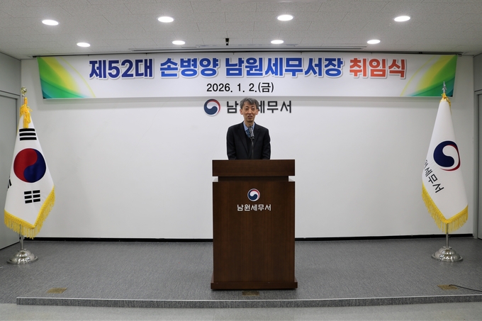 남원세무서는 지난 2일 4층 대회의실에서 전 직원이 참석한 가운데 제52대 손병양 신임 서장 취임식을 개최했다.