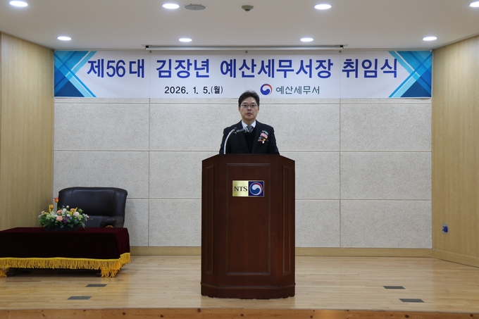 예산세무서는 5일 대강당에서 제56대 김장년 세무서장 취임식을 개최했다.