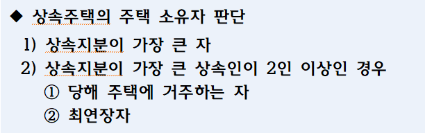 - 상속주택은 지분이 가장 큰 상속인이 주택을 소유하고 있는 것으로 본다. 따라서, 본인의 경우 상속주택을 제외하고 무주택 또는 1주택자에 해당하면 장기주택저당차입금(주택담보대출) 이자상환액 소득공제가 가능하다.