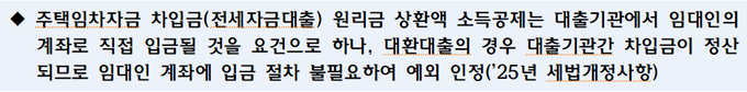 ◆’25년에 은행으로부터 전세자금대출을 받았는데, 금리가 다소 높은 것 같아 다른 은행으로 대출금을 이전(대환)했다. 전세자금대출을 타 은행으로 이전해도 원리금 상환액을 계속 소득공제 받을 수 있을까?