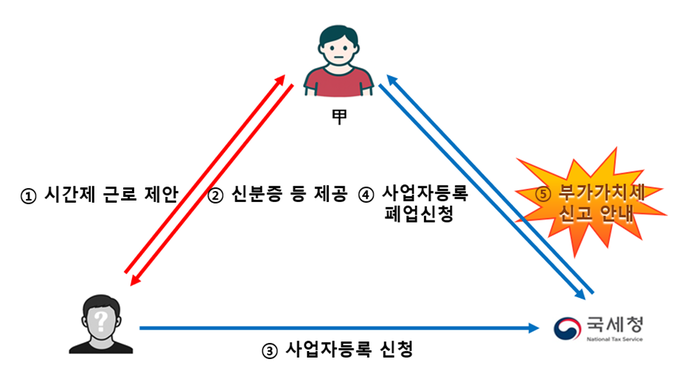 ◆근로계약서 작성을 미끼로 신분증을 요구하고 이를 이용해 사업자등록을 신청해 매출 발생…부가가치세 신고 안내까지 받아