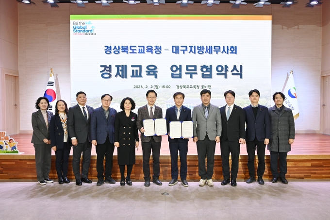 경상북도교육청 웅비관에서 열린 이날 협약을 통해 양 기관은 ‘미래를 설계하는 알뜰한 세금교실’ 운영을 중심으로 세금·경제교육 프로그램 지원, 상호교류 확대, 기관 발전 및 홍보를 위한 협력에 뜻을 모았다.
