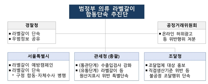 이번 합동단속은 공정거래위원회, 조달청, 경찰청, 서울특별시와 함께 이달 9일부터 5월 19일까지 100일간 진행된다. 저가 수입의류를 국산으로 거짓 표시하는 등 지속적인 불법행위를 근절해 국내 의류 제조업체의 피해를 막고 소비자 권익을 보호하기 위해 마련됐다.