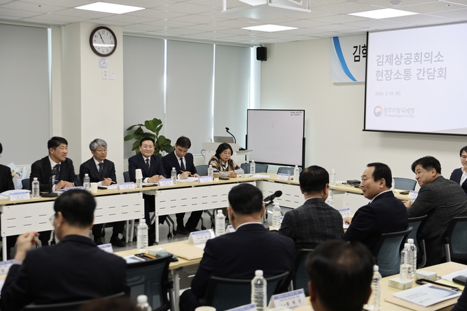 광주지방국세청(청장·김학선)은 19일 김제상공회의소(회장·김윤권) 초청으로 김제상공회의소 대회의실에서 김제지역 기업인들과 함께 '현장소통 간담회'를 개최했다.