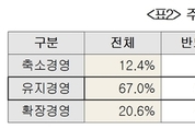 40.1%, 올해 경제상황 작년보다 둔화할 것으로 예상 '유지경영' or '축소경영' 기조, 전체의 79.4% 달해 경제활성화 위해 '환율 안정화 정책' 가장 많이 꼽아 수출 및 투자지표의 회복 흐름에도 불구하고 기업들은 올해 경제 흐름을 신중하게 전망하며 안정 중심의 경영 기조를 고수하는 것으로 나타났다. 대한상공회의소가 최근 전국 2천208개 제조기업을 대상으로 실시한 ‘기업이 바라본 2026 경제·경영 전망’ 조사에 따르면, 국내 기업 40.1%가 올해 전반적인 한국경제 경기 흐름이 지난해보다 둔화될 것으로 예상했다. ‘지난해와 비슷한 수준’을 예상한 기업은 36.3%였으며, ‘전년 대비 개선될 것’이라고 응답한 기업은 23.6%로 둔화를 예상한 기업의 절반 수준에 그쳤다. 기업들의 신중한 경기전망은 올해 경영계획에도 반영됐다. 2026년 경영계획 핵심기조를 묻는 질문에 기업 79.4%가 ‘유지경영’ 또는 ‘축소경영’으로 답했다. 이중 ‘유지경영’을 선택한 기업 비중이 67%에 달해 ‘확장경영’을 택한 기업(20.6%)보다 3배 이상 많았다. 2023년 12월에 동일한 방식으로 2024년 경영 기조를 조사했을 때는 ‘유지경영’ 또는 ‘축소경영’을 선택한