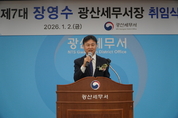 광산세무서는 지난 2일 4층 강당에서 전 직원이 참석한 가운데 제7대 장영수 서장 취임식을 가졌다. 장영수 서장은 취임사에서 "대내외적으로 어려운 경제 여건 하에서 세입 여건은 여전히 녹록지 않은 가운데, 우리는 선택과 집중을 통해 공정하고 합리적인 세정을 집행하며 미래도 준비하는 광산세무서를 만들어가자"고 강조했다. 장 서장은 "본연의 업무인 국가재원 조달과 공정과세에 역량을 집중해야 하며, 불요불급한 업무는 과감히 감축해 업무처리에 소요되는 시간과 노력을 줄여나가는 한편, 세원관리·조사에 있어 엄정하게 세법을 집행함으로써 ‘공정하고 합리적인 세정’을 전개해야 한다"고 말했다. 그는 "어려움을 겪고 있는 국민과 납세자에게 세금 신고·납부기한 연장, 환급금 조기지급 등 실질적으로 도움이 되는 세정지원을 펼쳐나가야 한다"고 강조했다. 아울러 "근무환경과 조직문화를 개선해 서로를 배려하고 진솔하게 소통함으로써 신뢰관계를 구축해 활기찬 직장을 만들어 나가자"고 당부했다. 마지막으로 장 서장은 "우리 인생에서 잠시 머물다 가는 직장생활이지만 분명 훗날에 우리 모두에게 의미가 있는 발자취, 아름다운 추억이 되길 기대한다" 며 "직원 여러분과 함께 근무하게 된 것을 기
