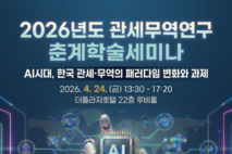 한국관세무역개발원, 24일 춘계학술세미나 개최 한국관세무역개발원이 인공지능 기술 확산에 따른 글로벌 통상환경 변화와 관세·무역분야의 대응방향을 모색하는 학술 장을 연다. 한국관세무역개발원은 오는 24일 서울 더플라자호텔에서 ‘AI시대, 한국 관세·무역의패러다임 변화와 과제’를 주제로, 2026년도 관세무역연구 춘계학술세미나를 개최한다고 16일 밝혔다. 이번 세미나는 최근 통상환경의 불확실성이 확대되는 상황에서 AI 기술이 무역과 관세행정 전반에 미치는 영향을 학술적·실무적으로 살펴보고, 관련 현안에 대한 전문가 의견을 교류하기 위해 마련됐다. 특히 디지털 기술 확산에 따른 통상환경 변화 속에서 한국 관세·무역의 대응 방향과 향후 과제를 모색하는 자리가 될 전망이다. 행사는 기조연설과 3개의 주제 발표 및 종합토론으로 진행된다. 우선 최원목 이화여자대학교 교수가 ‘디지털 기술 확산에 따른 글로벌 통상환경 변화와 한국의 대응 과제’를 주제로 기조연설에 나선다. 이어지는 주제 발표에서는 △유정호 부경대 교수의 ‘AI가 무역에 미치는 영향’ △정재호 수원세관장의 ‘관세행정의 AI 활용 현황과 발전방향’ △조현기 한국관세무역개발원 부연구위원의 ‘무역학분야 인공지능(A