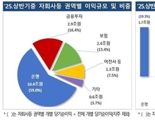 10개 금융지주회사의 올해 상반기 당기순이익이 지난해 같은 기간보다 약 10% 늘어 15조원을 넘은 것으로 나타났다. 금융감독원이 4일 발표한 ‘2025년 상반기 금융지주회사 경영실적(잠정, 연결기준)’에 따르면, 올해 6월말 금융지주회사의 총자산은 3천867조5천억원으로 전년말 대비 약 112조8천억원(3.0%) 증가했다. 올 상반기 금융지주회사의 당기순이익은 15조4천428억원으로 전년 동기(14조556억원) 대비 약 1조3천872억원(9.9%) 증가했다. 올해 6월말 현재 금융지주회사는 총 10곳이다. 은행지주는 △KB △신한 △하나 △우리 △NH △iM △BNK △JB며, 비은행지주는 △한투 △메리츠가 있다. 이들 금융지주회사의 자회사 등 소속회사 수는 총 340개로, 올해 상반기 중 금융지주 내 7개 회사가 새로 편입되고 2개 회사가 정리돼 전년말(335개) 대비 5개 회사가 증가했다. 총자산 대비 권역별 자산 비중은 은행이 74.2%로 가장 높았다. 뒤이어 △금융투자 11.5% △보험 6.7% △여전사 등(카드, 캐피탈, 저축은행 등 포함) 6.1% 순이었다. 자산 증감은 은행 60조3천억원(2.1%), 금융투자 41조6천억원(10.3%), 보험