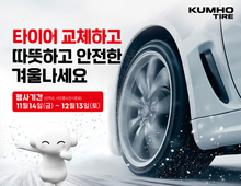 금호타이어는 14일 타이어 구매 고객을 대상으로 프리미엄 사은품을 제공하는 겨울 이벤트를 진행한다고 밝혔다. 이번 이벤트는 금호타이어 겨울용 타이어를 비롯한 프리미엄 제품 4개를 구매하는 고객을 대상으로 14일부터 선착순으로 사은품을 증정하며, 타이어프로 등 전국 금호타이어 대리점(일부매장 제외)에서 실시한다. 행사 제품은 ▲겨울용 타이어 ‘윈터크래프트 WP72 ▲겨울용 타이어 ‘윈터크래프트 WS71’ ▲프리미엄 ‘마제스티X 솔루스’ ▲프리미엄 ‘크루젠 HP71’이 대상이다. 행사 제품을 구매한 고객은 전기요(매트)와 전기 담요 중 하나를 받을 수 있으며 내달 13일까지 제품 구매 고객 중 추첨을 통해 로봇청소기, 가습기, 갤럭시 워치, 스타벅스 커피 쿠폰 등이 제공될 예정이다. 금호타이어 한국영업부문 김성 상무는 “겨울철 고객들의 안전 운행을 기원하고 따뜻한 겨울을 보낼 수 있도록 겨울용 등 프리미엄 타이어 구매 이벤트 행사를 준비했다"며 "안전한 운전을 위해 정기적으로 타이어프로 등 전문 매장을 방문해 타이어 점검을 받으시길 추천드린다”고 말했다.