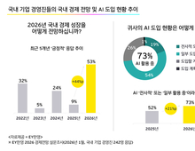 EY한영, 경영진 242명 대상 설문조사 경영전략, 확장보다 효율·내실에 무게 73% "AI 전사적 또는 일부 활용 중" 국내 경기회복에 대한 기대감이 높아지면서 국내 기업 경영진의 경기 전망이 지난해 대비 눈에 띄게 개선됐다. 지난해 조사에서 91%에 달했던 ‘부정적’ 응답은 크게 줄어든 반면, 올해 조사에서는 ‘긍정적’ 응답이 53%로 최근 5년 중 가장 높은 수치를 보였다. EY한영은 지난달 ‘2026 EY한영 신년 경제전망 세미나’에 참석한 국내 주요 비즈니스 리더들을 대상으로 실시한 설문조사 결과를 6일 발표했다. 이번 조사에는 국내 기업 경영진 242명이 참여했다. 조사 결과에 따르면, 올해 한국 경제를 ‘긍정적’으로 전망한 응답자는 53%로 과반을 넘겼다. 이는 전년도 조사에서 ‘부정적’ 응답이 91%에 달한 것과 대조적이다. 기업들의 실적 자신감도 회복한 것으로 확인됐다. 응답자의 55%는 올해 자사 실적이 전년 대비 성장할 것으로 내다봤다. 이는 지난해(41%)보다 14%p 상승한 수치다. 반면 실적 악화를 예상한 응답 기업 비중은 12%로, 최근 5년 중 최저 수준을 기록했다. 대외리스크에 대한 인식도 일부 완화됐다. 올해 기업 운영의 주요