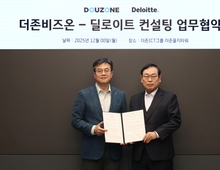 더존의 AX 기술력에 딜로이트 컨설팅의 E2E 컨설팅·BPO 역량 결합 IFRS 18·ESG 공시·AI 내부통제 등 역량 융합, 대외 경쟁력 강화 더존비즈온(대표·김용우)은 딜로이트 컨설팅 코리아(대표·배재민)와 더존을지타워에서 OmniEsol 기반 대외사업 확대와 글로벌 공동사업 추진을 위한 업무협약(MOU)을 체결했다고 8일 밝혔다. 이번 협약은 더존비즈온과 딜로이트 컨설팅의 역량을 결합해 국내외 시장에서 전방위적인 사업 협력을 추진하기 위해 마련됐다. 이를 위해 기업용 비즈니스 플랫폼 OmniEsol에 딜로이트 컨설팅이 보유한 글로벌 수준의 비즈니스 전략과 AI 컨설팅까지 아우르는 엔드투엔드(End to End) 서비스를 내재화한다는 목표다. 양사는 OmniEsol을 기반으로 재무·회계, 세무, 금융범죄 방지(AML) 등 딜로이트 컨설팅의 전문 아웃소싱 서비스인 BPO(Business Process Outsourcing) 모델을 융합하고 AI 기반 내부회계 및 상시 모니터링 서비스를 접목할 계획이다. 이를 통해 기업들은 내년 이후로 예고된 ESG 공시 의무화와 2027년 시행을 앞둔 새 국제회계기준(IFRS 18)과 같은 복잡해진 규제 환경에 선제적으로