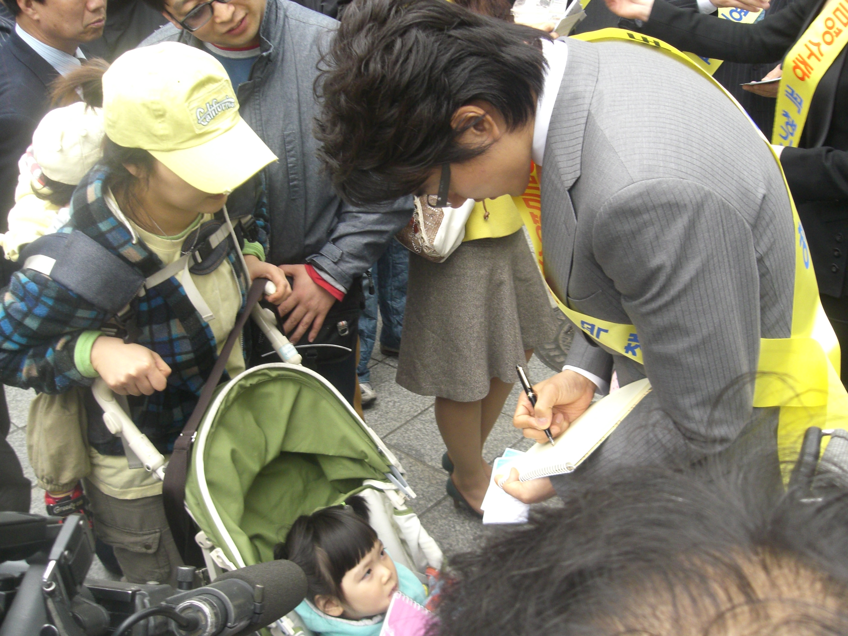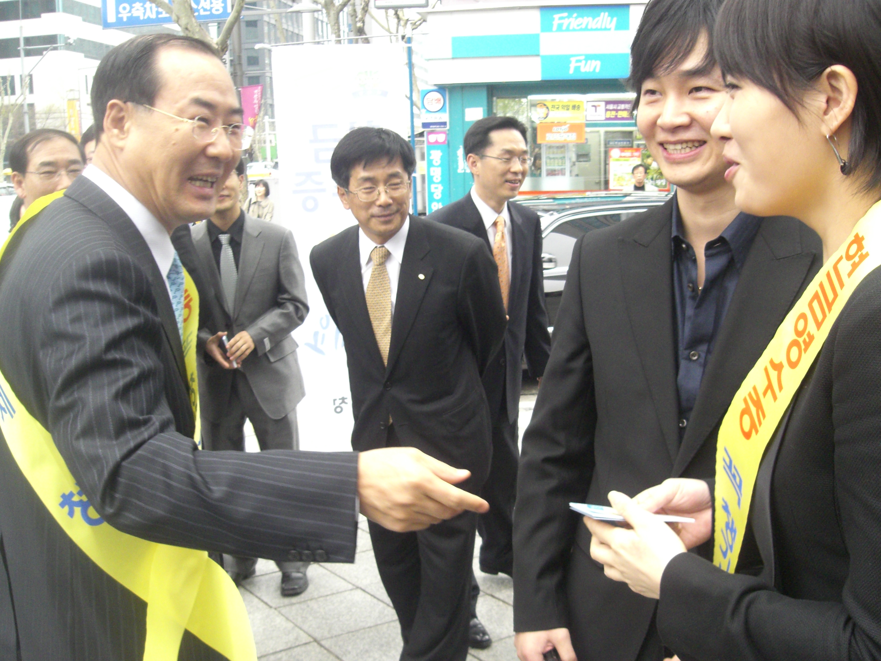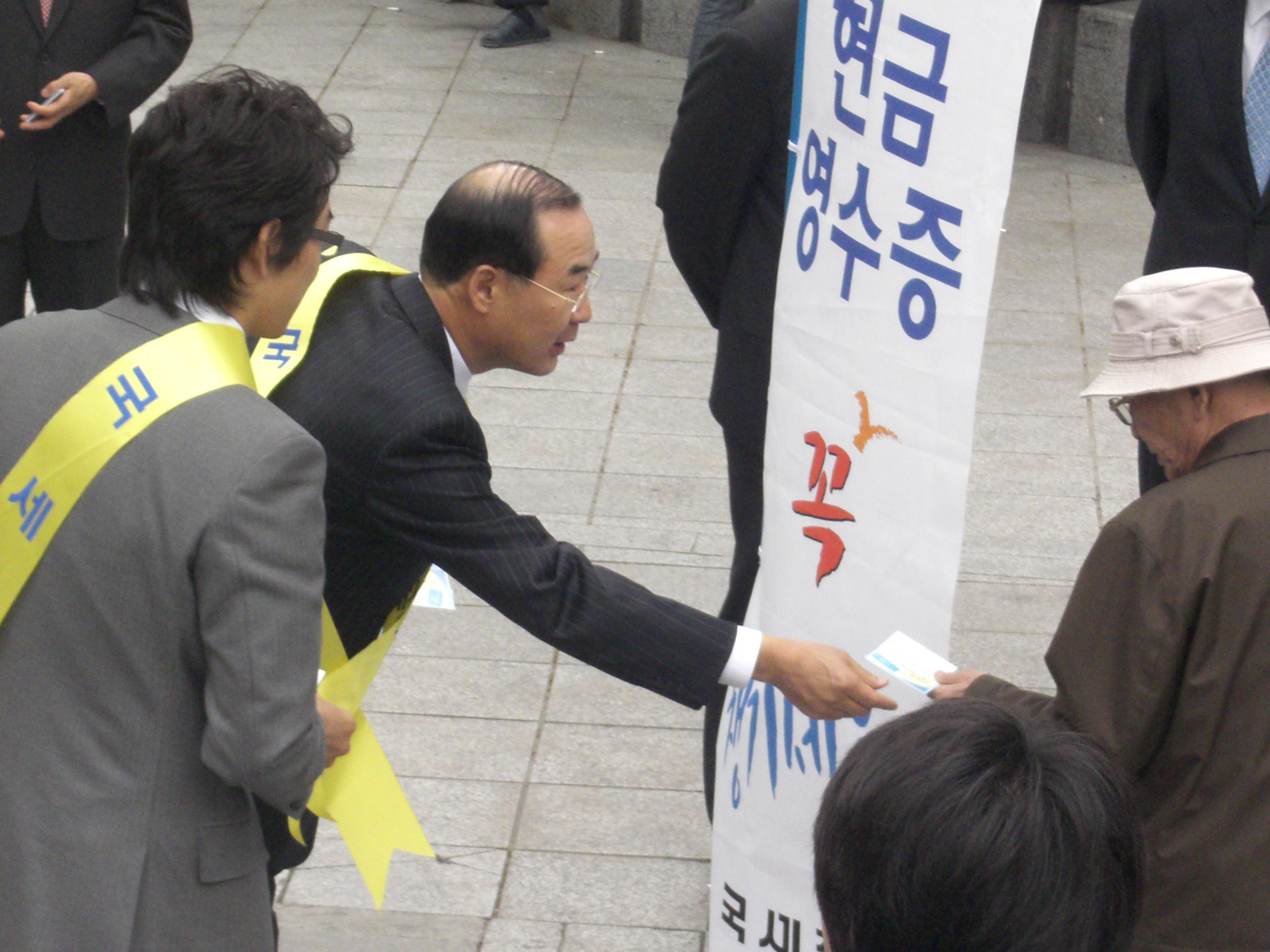 전군표 청장은 12일 탤런트 송일국, 김선아씨와 함께 종각역 앞에서 현금영수증 홍보 가두 캠페인을 벌였다.