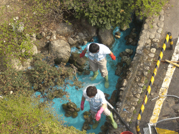 문제준 업무지원팀장 및 공익근무요원들은 연못속에 잠겨 있던 돌맹이 하나하나를 꺼내 사이에 낀 이끼를 제거하고, 깨끗한 물로 바꿔주었다.