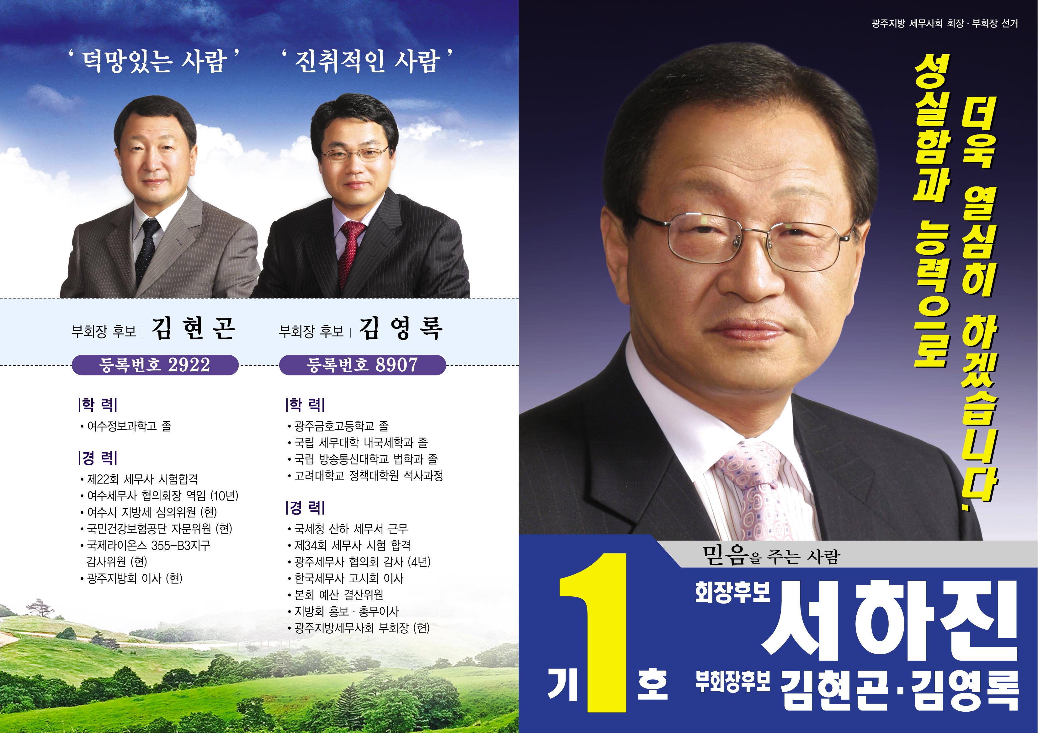 또 서 후보는 광주지역은 김영록 부회장 후보와 함께 동행해 회원사무소를 방문하면서 지지를 호소하는 한편, 지역 여건상 여수.순천지역을 방문할 때에는 김현곤 부회장 후보를 대동, 순회 선거투어 방식으로 회원들을 접촉하면서 본인이 차기회장의 적임자임을 강조하며 마지막 혼신의 힘을 쏟고 있다.