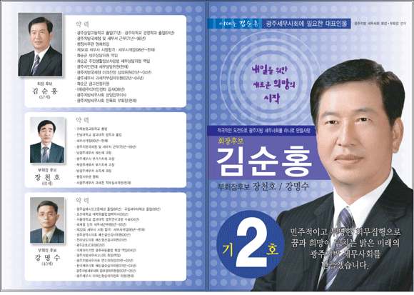 기호2번 김순홍 회장후보 선거 홍보물.