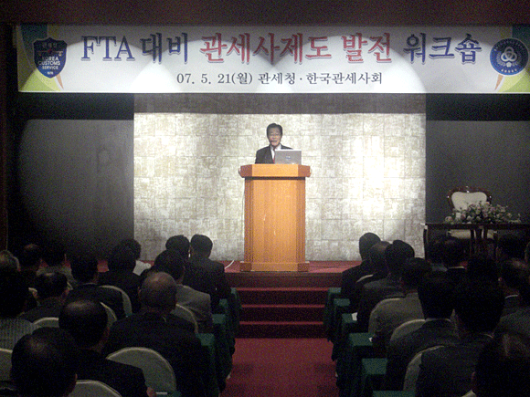 이날 워크숍은 FTA 교역환경에서 새롭게 정비된 관세행정 방향설명과 이에따른 관세사계의 발전방향을 모색하기 위해 마련됐으며, 오전 10시30분부터 시작된 워크숍에서는 관세청 주무 국·과장 15명 및 전국 관세사 200명이 참석해 FTA 교역환경에 변화에 따른 관세사계의 지대한 관심여부를 반영했다.