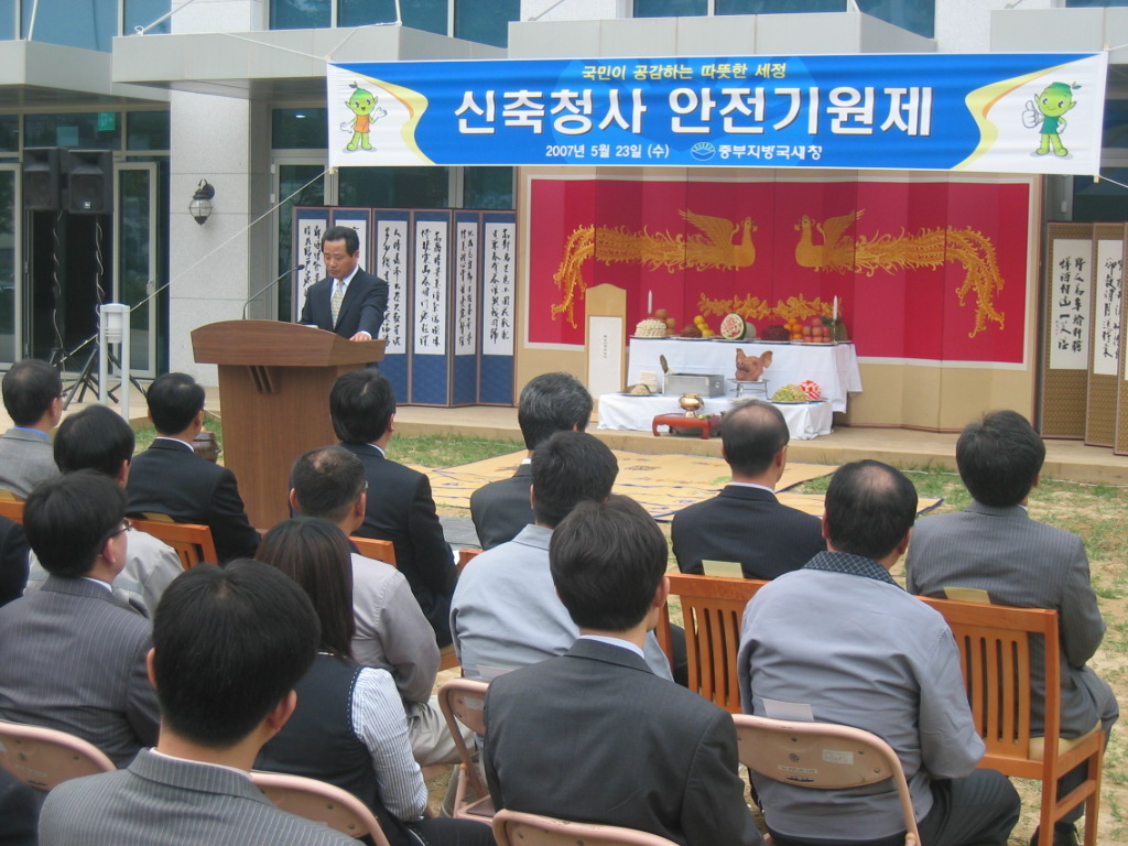 중부청 신청사는 지상 11층 지하 3층 연면적 8천147평의 자연친화적 현대식 건물로, 지난 04년12월부터 07년5월까지 총 공사기간 30개월 동안 아무런 안전사고 없이 성공적인 완공을 이뤄냈다.