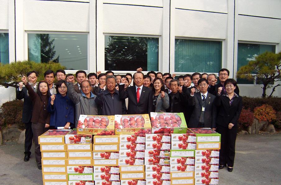 특히 사과수확시기에 외국의 값싼 농산물 유입으로 인하여 판로에 어려움을 겪고 있다는 자매결연 마을의 소식을 접한 즉시 모든 직원들이 한뜻이 되어 60여상자 직거래 구매가 이루어 졌다.