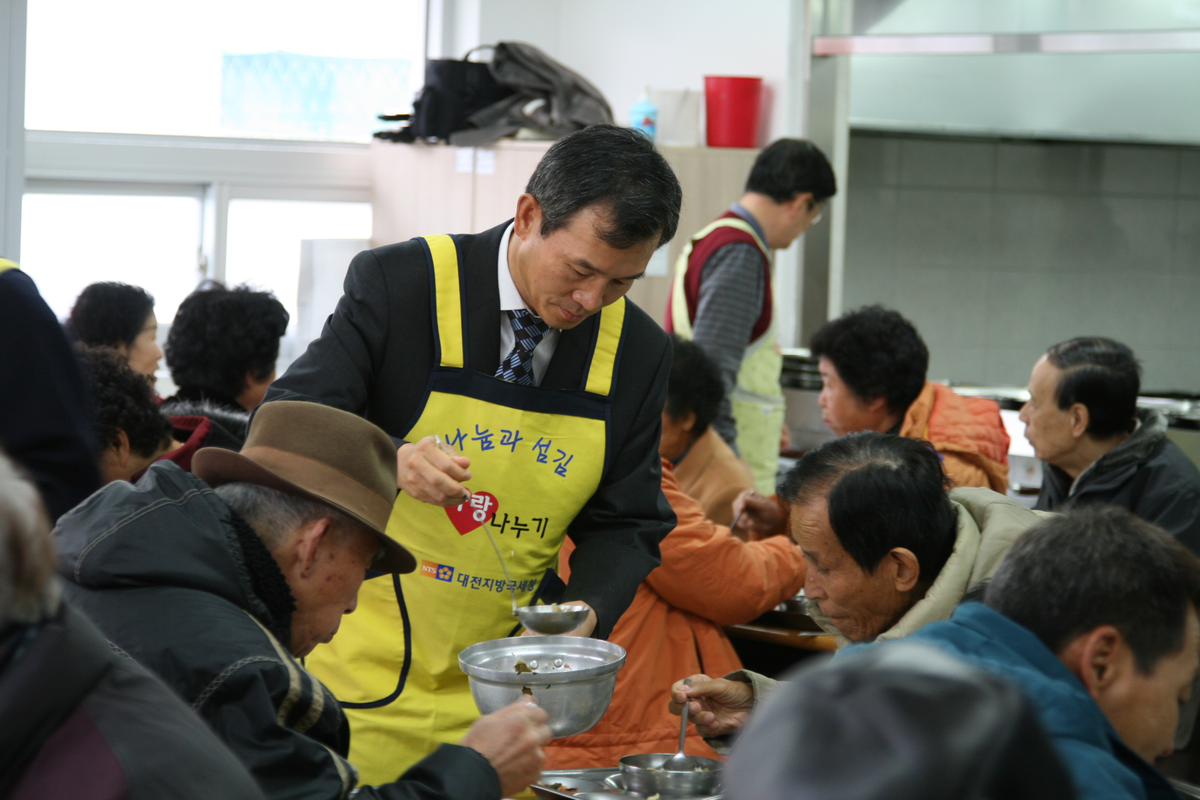 이날 행사는 지방청 국장 등 간부 7명과 함께 직접 독거노인 등 200여명의 불우이웃들에게 따뜻한 밥을 나누어 주는 이웃사랑,「나눔」을 실천하기 위해 행사에 참했다.