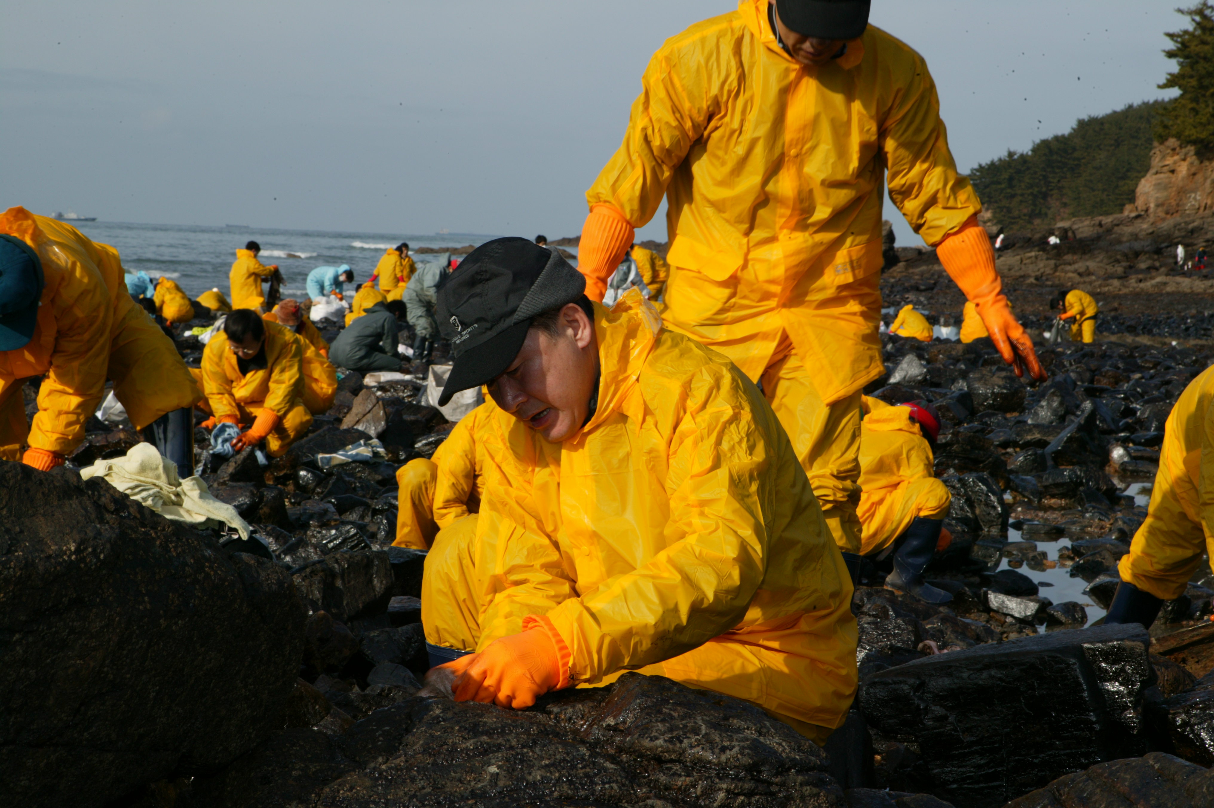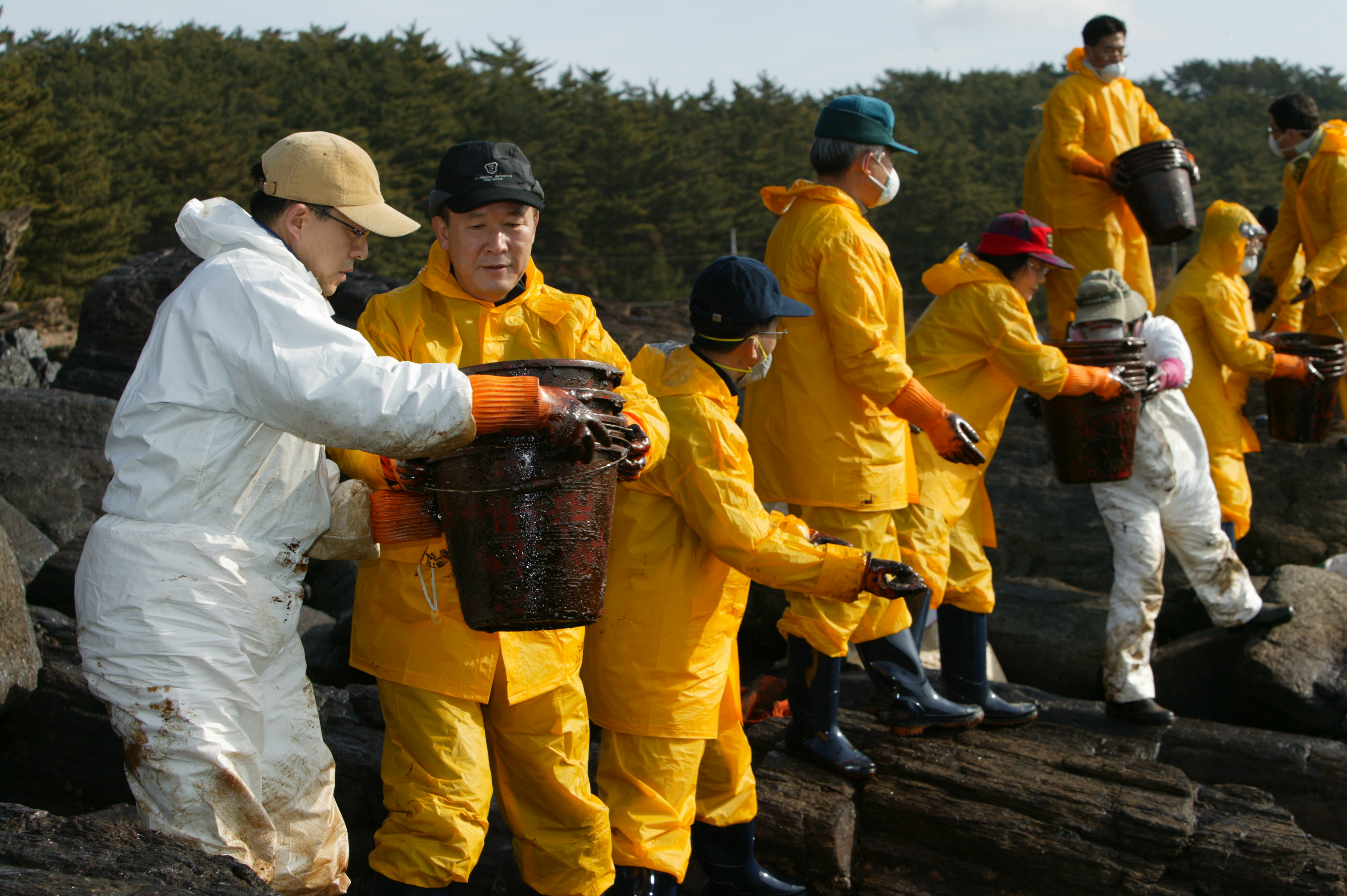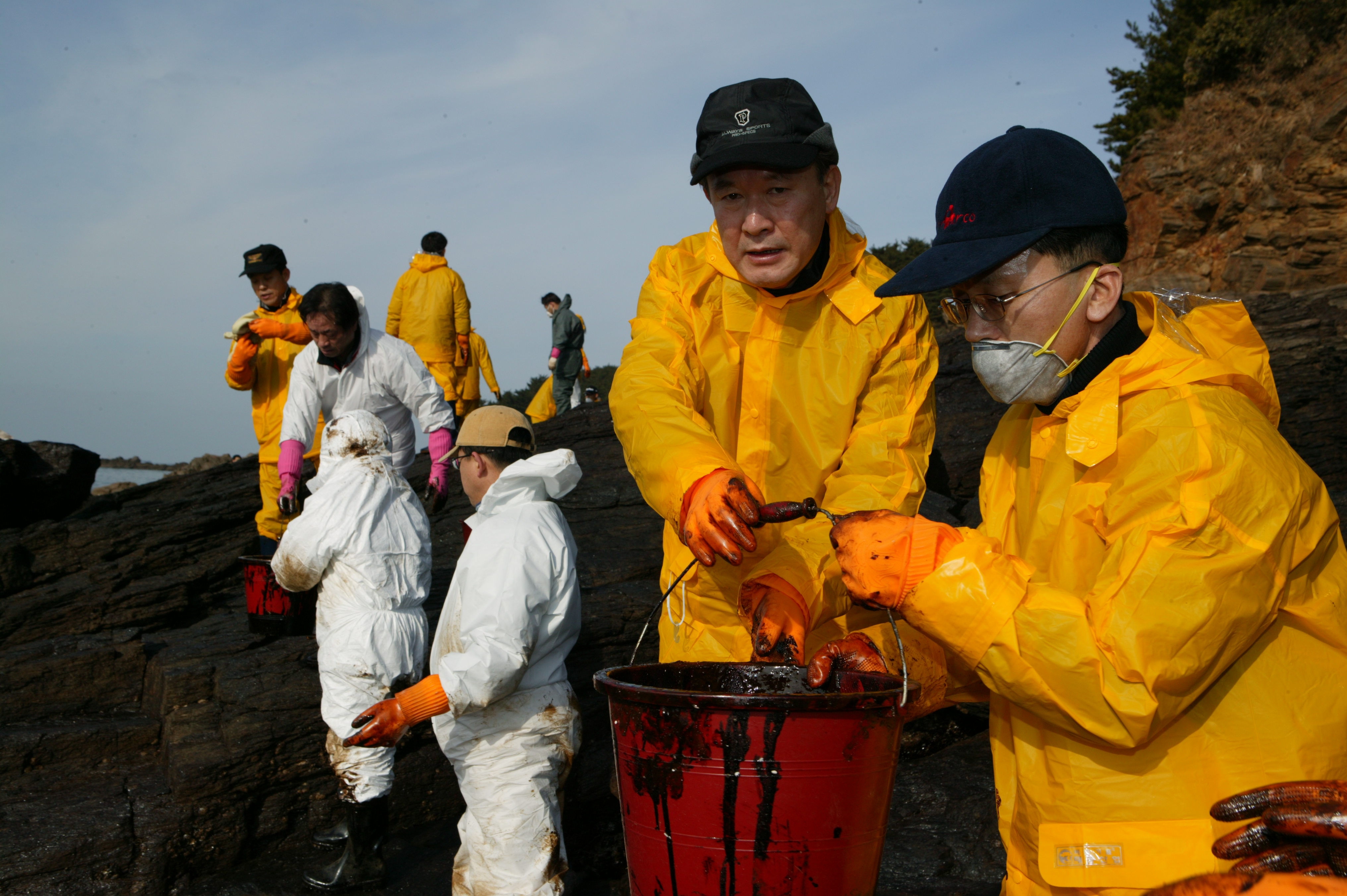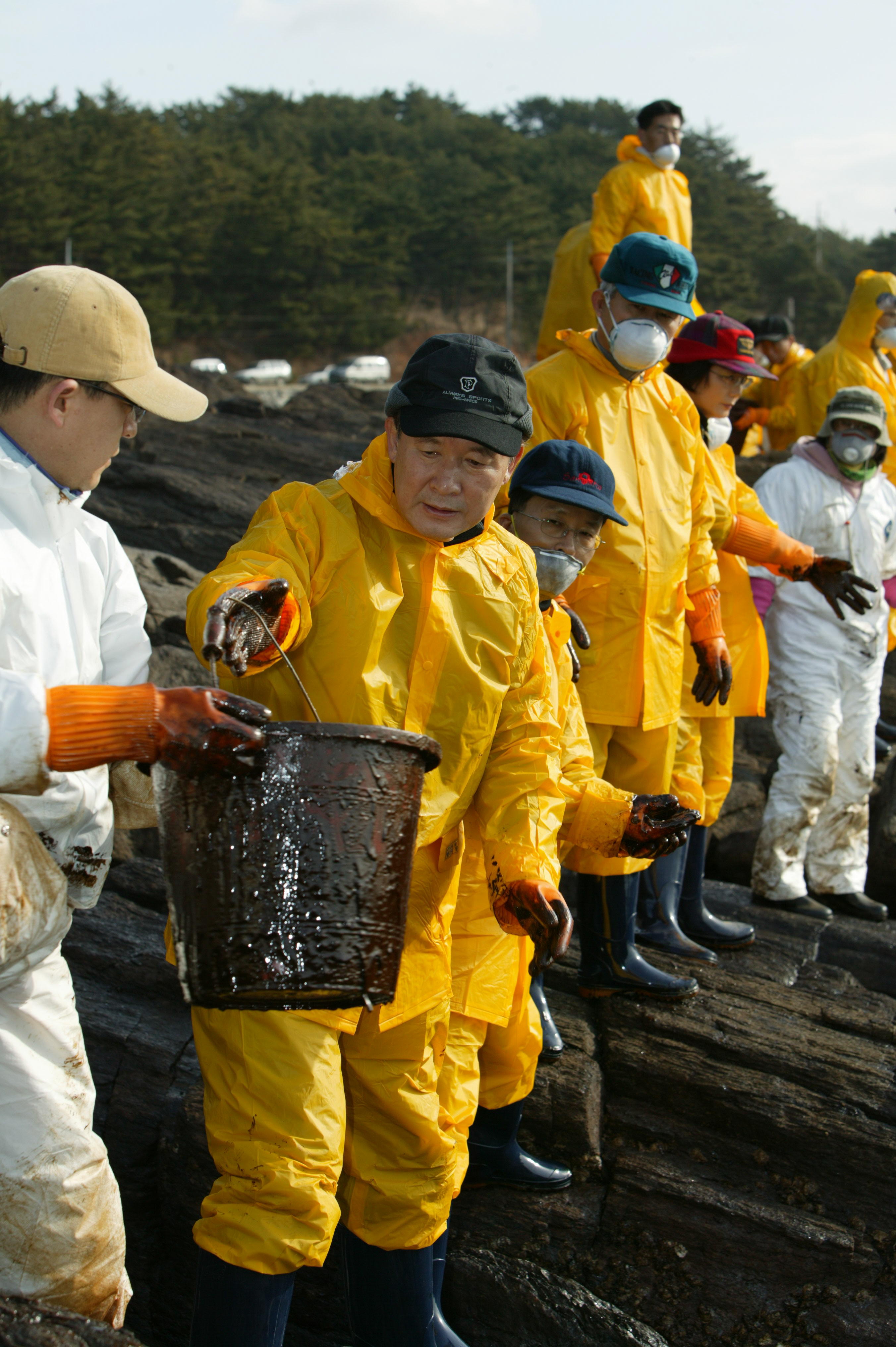한상률 국세청장과 국세청 직원들 태안 기름띠 방제작업에 휴일 반납.