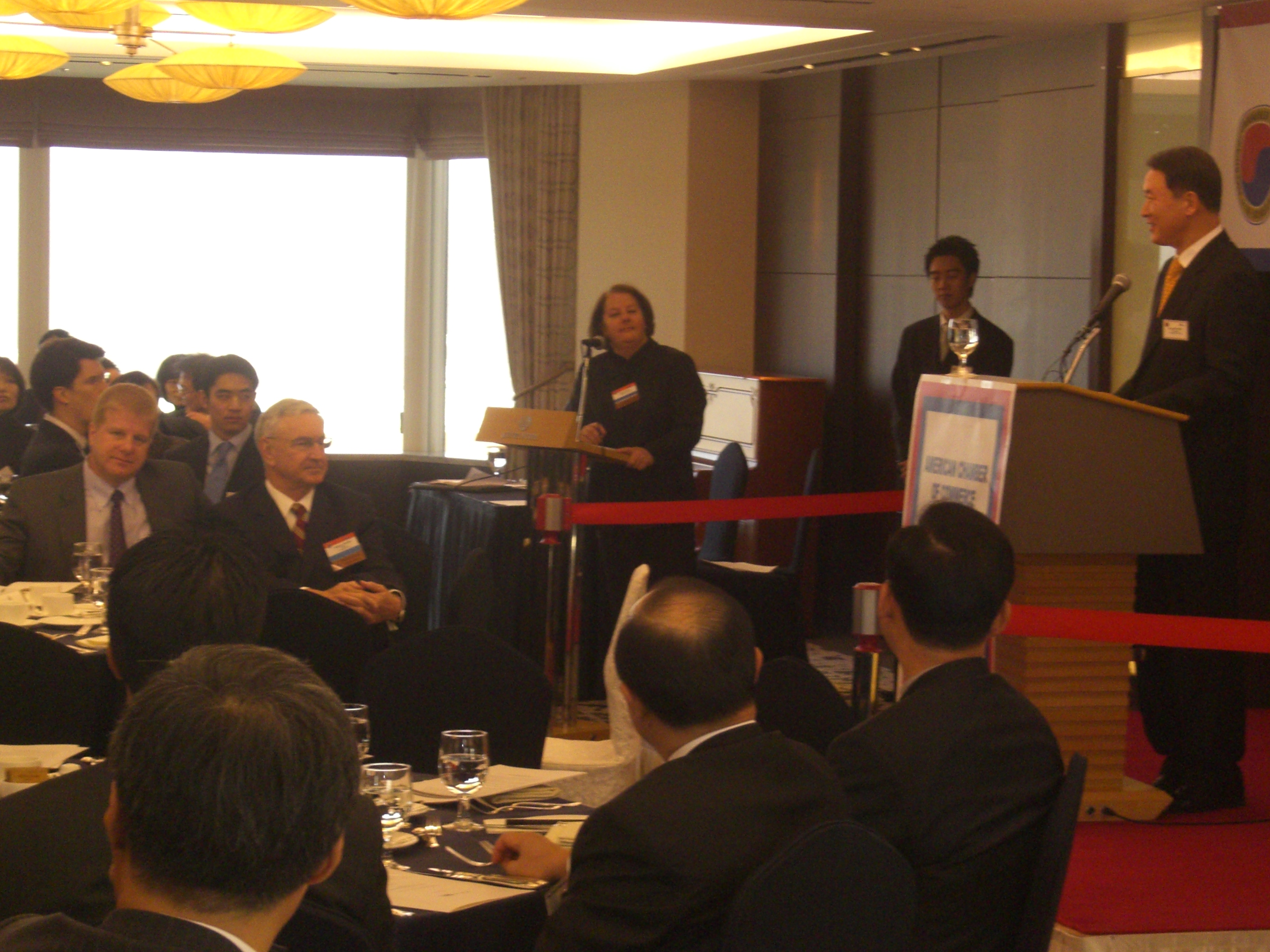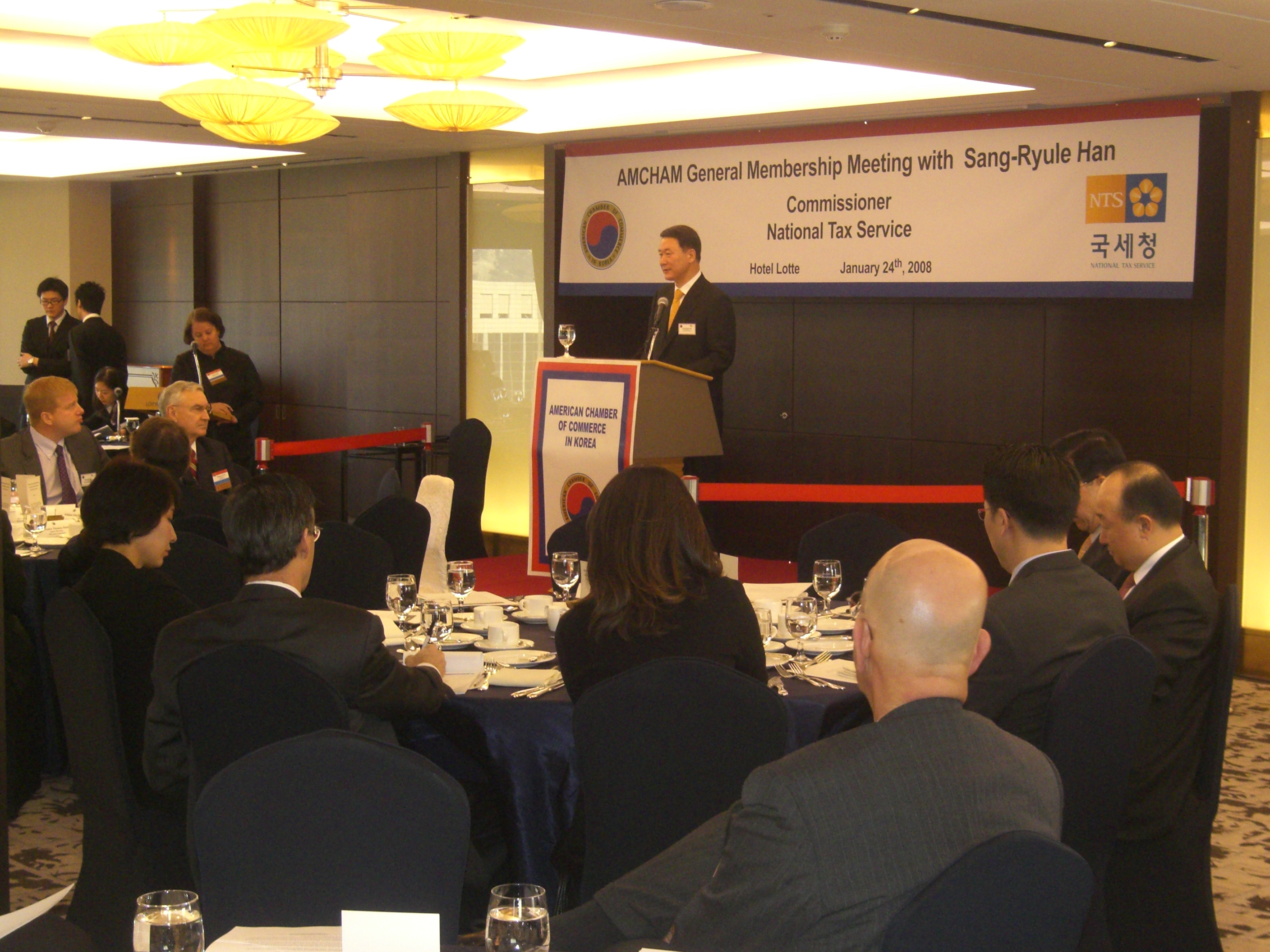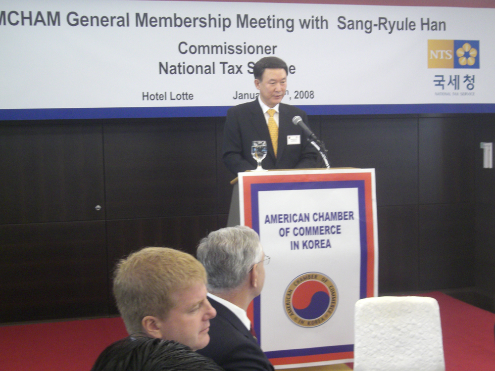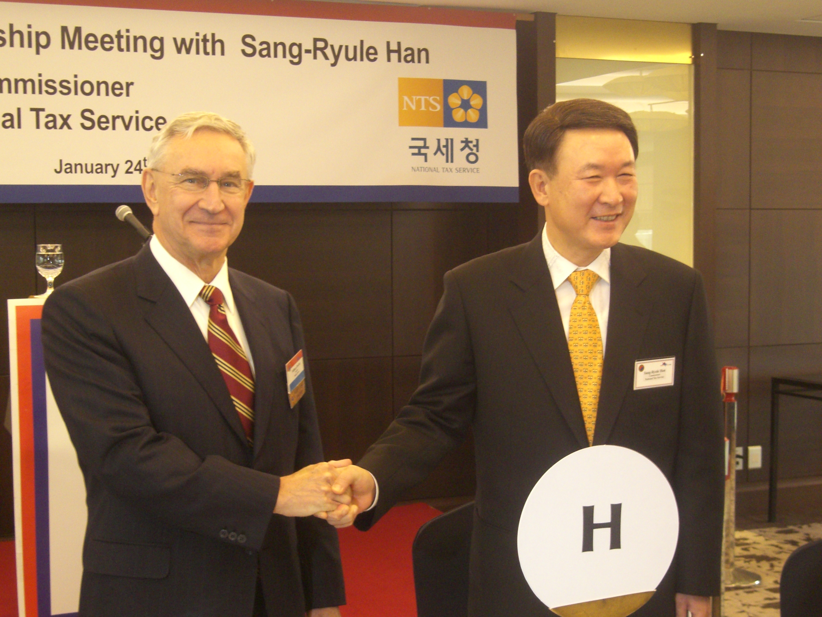 한상률 국세청장과 월리엄 암참회장의 만남.