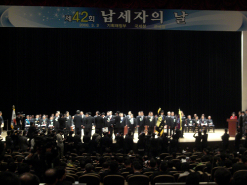 대한민국 건국 60주년과 새정부 출범을 맞는 해인 올해, 제42회 납세자의 날 행사가 3일 오전 10시 코엑스 컨벤션센터 오디토리움에서 성대하게 개최됐다.