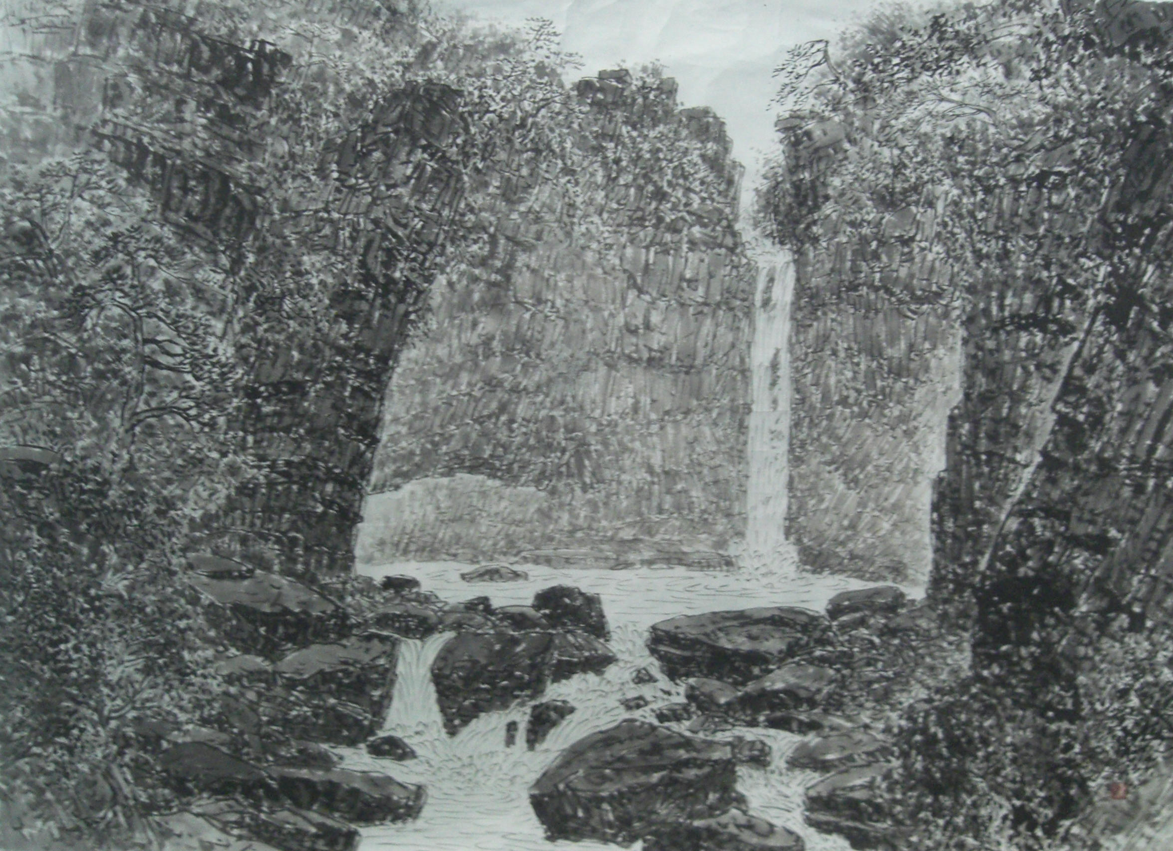 본사주최 제6회 한국서화명인대전에서 명인상을 수상한 박인복 씨의 '재인폭포'(한국화 부문).